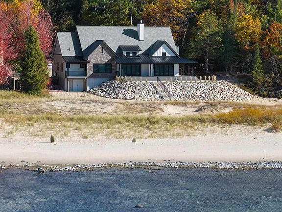 Watch one sunset over Lake Michigan, and you will understand why it has long been called an inland sea. Spend your summers or live full-time at 5060 Lower Shore Drive, and you may enjoy such site on any given day. Sand dunes roll from the porch to the water’s edge where you can launch a paddle board in the morning, take an evening swim, or walk for miles along the beach in either direction. The pace along the shore even in the peak season is relaxed. Follow the famed “tunnel of trees” a few miles south and experience the bustle of Harbor Springs in summer with its many shops, restaurants, marinas, and even a twice-weekly farmer’s market. Construction of this new waterfront residence was completed in 2024, and the 120 feet of frontage provides unobstructed views of Lake Michigan from nearly every room. Features of this custom-built home include: three en-suite bedrooms; an open floor plan with vaulted ceilings; wood floors throughout the main living areas; finished bonus room above the attached garage; full basement with outdoor access for ample storage; concrete driveway, porch, and patio; central air conditioning; Natural gas and highspeed fiber optic internet services. This property represents the best value in Lake Michigan living currently on offer in the Harbor Springs. Please contact your preferred agent for a private tour.