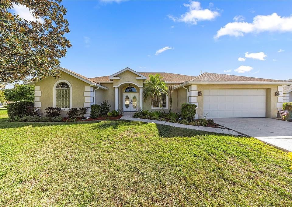 Welcome to this stunning 3-bedroom, 2-bath home in Ocala Palms conveniently located near shopping, dining, entertainment, and the World Equestrian Center. This open floor plan features high ceilings and a desirable split layout, providing plenty of natural light, privacy, and space for guests. The newly updated kitchen offers modern finishes and ample storage. Enjoy relaxing on the screened-in lanai with serene views of the koi pond and golf course!! Additional highlights include updated flooring, newer carpet, and a peaceful setting in a sought-after community. Don’t miss your chance to make this beautiful home yours!