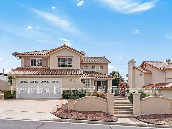 Welcome to 5060 Nighthawk Way Your Dream Home Awaits! This two-story gem boasts mature landscaping, an oversized, two-car garage with work shop area, and a balcony off the master bedroom with breathtaking canyon views and peek-a-view view of the ocean! Revel in the elegance of tile flooring, a formal living and dining room, and a double-sided fireplace in the master bedroom. The gourmet kitchen features granite countertops, ample cabinet space, and a gas stove top with a double oven. Enjoy convenience with a FULL sized bedroom and FULL bathroom downstairs. Unwind in the master bath's soaking tub or walk-in shower, complete with a cozy attached fireplace. Embrace the ambiance of 2-inch blinds, freshly painted maple cabinetry, and a brand-new deck. Ideally situated near schools, shopping, and freeway access. This home is located in a gated community and is pet friendly with an enclosed dog run. Your sanctuary awaits at 5060 Nighthawk Way!