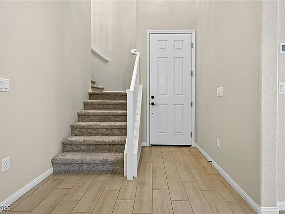 Imagine coming home to bright, open spaces filled with natural light, every detail fresh, inviting, & designed for the way you live today. Built in 2024 & move-in ready, this 4bed, 2.5bath beauty blends modern design with everyday comfort! No waiting, no stress, just instant style & ease. The heart of the home is the chef inspired kitchen with white cabinetry, quartz countertops, & premium GE stainless steel appliances, perfect for casual dinners or weekend entertaining. Upstairs, a spacious loft offers room to work, play, or unwind, while the luxurious primary suite is your private sanctuary with a spa like bath, soaking tub, and separate shower. Step outside to an extended covered patio made for morning coffee, sunset dinners, or quiet evenings under the stars. With low maintenance landscaping, elegant finishes, & a roomy 2 car garage, this home makes every day feel elevated & effortless. Live beautifully. Entertain easily. Relax completely. Your new Las Vegas lifestyle starts here.