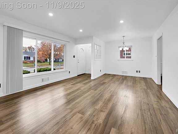 Welcome to this stunning ranch home, ideally located near all markets, shopping centers, and everyday conveniences. Freshly painted in 2025 and featuring brand-new luxury vinyl flooring throughout, this home shines with modern updates. The gorgeous white kitchen (2025) boasts granite countertops, a stylish backsplash, and new microwave and dishwasher. The spacious great room offers recessed lighting and updated fixtures, perfect for relaxing or entertaining. Enjoy peace of mind with a newer roof (2023), hot water tank (2024), and newer windows. The bathroom includes a brand-new vanity, and the finished basement provides extra living or recreation space. Step outside to a fenced backyard, ideal for pets, play, or outdoor gatherings. A two-car garage with a brand-new epoxy floor (2025) completes this move-in-ready home. Nothing to do but unpack and enjoy your beautiful new space!