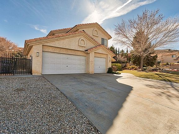 Prestigious West Palmdale Rancho Vista Beauty! This Spacious 2-Story Open Floor Plan includes 5 bedrooms, 3 baths with the perfect convenience of One Bedroom DOWNSTAIRS with direct FULL BATH entry (perfect for in-laws, or guest quarters)! Entrance with vaulted ceiling and spiraling staircase, includes Formal Living Room/Dining combo which centers around a lovely oversized, picturesque Bay Window! Kitchen opens to Large Family Room, & includes many wood cabinets, updated tile floors, newer stainless steel appliances, island and adjoining Large Family Room with full length brick fireplace. Spacious Master Suite with fireplace, includes Walk-In Closet and Master Bath with oval tub, separate shower and dual sinks. All bedrooms are ample size with large closets. With the lovely attraction of the full length covered patio, enjoy the invitation to your beautifully landscaped front and backyards splashed with a mix of foliage, greenery and mature trees. The large side yard could be a possible courtyard for downstairs bedroom, opposite sideyard could entertain a possible RV. All located in the highly desirable West Palmdale School District, near shopping and minutes from the 14 Fwy. This is your Home Sweet Home!
