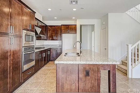 Newly built 2015 home across from the Richard Nixon Library in the Covington Community of Yorba Linda. This beautiful home is an end-unit where the patio faces the green belt/playground. The main level offers a great open layout of the kitchen and living room. The kitchen is equipped with soft close cabinetry, an oversized kitchen island with breakfast bar seating and stainless-steel appliances. Your dining area is right off the kitchen and the living room is opened all the way up to the kitchen with a cozy fireplace and access to your outdoor patio. Completing the downstairs is a full-sized bedroom and bathroom with a walk-in shower. Upstairs is the master, 2 generously sized bedrooms with a huge dual vanity bathroom, and the laundry room for convenience. The master retreat features a large walk-in closet and spa-like bathroom with a walk-in shower, as separate soaking tub, dual vanity and sinks with granite countertops. 2 car garaged attached as well as additional community/guest parking throughout. Family friendly and safe community to live in with well-kept grounds. Easy walk to the pool, clubhouse, and even the newly built Yorba Linda Town Center. Great schools nearby. This won't last long - don't miss your opportunity! Renter is responsible for all utilities.