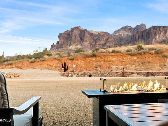 Cradled at the base of the legendary Superstition Mountain Range, this extraordinary property rests at the end of its own private road, capturing panoramic views that stretch from glittering city lights to the rugged beauty of the mountains. Completed in 2022 with solid 2x6 construction, it feels brand new—only better—crafted with today's most advanced features for comfort, style, and efficiency. Living here means stepping into the heart of Apache Junction's unmatched outdoor lifestyle. Known as the most equine-friendly town in Arizona, miles of scenic riding trails are right at your doorstep. Adventure seekers will love being minutes from Canyon Lake, perfect for boating and fishing, and surrounded by endless hiking and biking trails that wind through the Superstitions and Tonto National Forest. This is where Arizona's legendary beauty meets everyday living.
