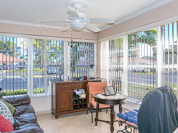 Well maintained CBS 2/2 Villa in the desirable 55 plus Community of High Point Sect 7 With almost 1150 living sq ft, this 1 story open concept offers a very spacious feel. In addition to the formal dining area and living room, the finished Florida room can serve many purposes. Enjoy the beautiful Florida sunshine on your back patio area while sipping on coffee or tea while chatting with new friends. Carefree living with a reasonable HOA fee that covers several utilities and maintenance on the villa's exterior and roofs. High Point of Delray offers a private clubhouse, luxurious swimming pool, guest parking, picnic area, tennis courts, pickleball court and bus service for active adults living in the community