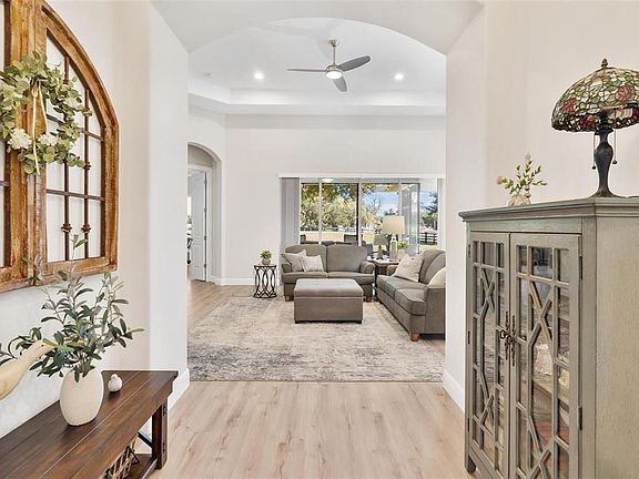 Have you been looking for an immaculate 4 bedroom home on the golf course and in a gated community? Well look no further! Discover modern luxury and serene golf course living in this stunning 4 bedroom 3 bath home built in 2020. Perfectly situated on a corner lot on Tee #3, this property offers sweeping views as golfers tee off to the fairway! Step inside to find an open concept floor plan featuring high ceilings, designer finishes and abundant natural light. The gourmet kitchen is a chef's dream with quartz countertops, ample cabinet space, stainless appliances and spacious island perfect for entertaining. The primary suite off the living area offers a peaceful retreat with a spa like bathroom with double sinks and dream walk in shower plus double walk in closets. Three additional bedrooms provide ample room for family or guests. Imagine enjoying your morning coffee or evening glass of wine on the screened in back porch overlooking the manicured green. This back porch is the perfect blend of outdoor living. Another major perk is the whole home Generac generator that brings you peace when you loose power. Live where you play and love where you live in the Harbor Hills community! Between golfing, the community pool, the on site restaurant and many different activity clubs-this neighborhood can keep you busy right near your door step! Conveniently also located just miles to The Villages! Do not miss your chance to make this immaculate home yours! Move in today and start living the lifestyle you deserve!