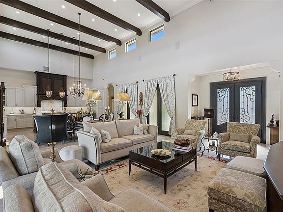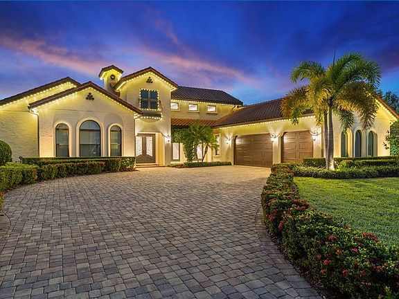 STUNNING CUSTOM estate in the exclusive GATED community of Sawyer Sound - a private enclave of just 20 luxury homes, ideally located near top-rated public and private schools, excellent dining, and premiere entertainment. Built under the meticulous supervision of its owners, one of whom is an accomplished interior designer, this home showcases exceptional quality and attention to detail. With marble floors, soaring ceilings adorned with wood beams, solid-core interior doors, designer lighting, thick crown moulding, beautiful custom window treatments and appealing color schemes, you'll find LUXURY in every detail. The chef's kitchen is a masterpiece with rare natural stone Cristallo Quartzite counters installed with under lighting, custom wood cabinets, a copper farmhouse sink, imported fixtures, and all Thermador appliances - including an 8 burner natural gas range, a built in steam oven that functions as microwave, convection oven, and air fryer. Gatherings in this home are show stoppers with stacked sliding doors that disappear to create a seamless transition to the lanai and pool area offering natural travertine, remote controlled retractable screens, natural gas fireplace, summer kitchen, salt water pool and a lushly landscaped backyard oasis. Enjoy the comfort of TWO primary suites, each with spa style bathrooms featuring large showers, soaking tubs and custom walk-in closets. The main suite has a bedroom in close proximity that would also be an ideal nursery, library or office. Two more bedrooms share a beautifully designed bathroom and each has a walk-in custom closet. Rooms are adorned with plantation shutters and/or designer made window treatments, including silk lined drapes with darkening fabric in the primary suite. Practical luxury continues with a huge laundry room with granite counters, custom cabinets, closet, sink and a folding area. The pantry doubles as a thick concrete reinforced "safe/panic room" equipped with a phone line and additional security and safety features. Every detail has been thoughtfully considered - from the whole house natural gas generator, water softener, energy efficient foam insulation, and double paned windows to the climate controlled three car garage with an EV car charger, epoxy floor, custom storage, large safe, and bike racks. SMART HOME technology allows you to control all systems from your phone - the thermostat, pool, lighting, interior and exterior cameras, and music. This iconic Sawyer Sound residence must be seen to be fully appreciated. Every space tells a story of luxury, design, and comfort - crafted for those who expect the best. All measurements should be verified by buyer.