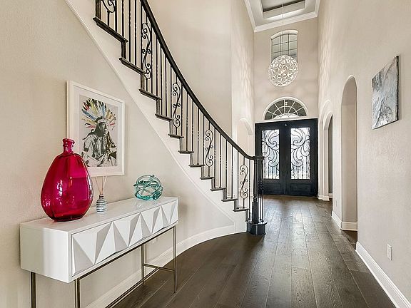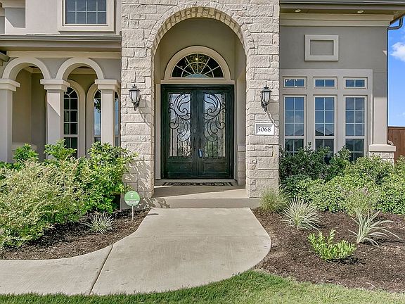Just 2 years new, this Taylor Morrison Bevington Plan is one of a kind. Resting on nearly 1/2 acre lot, this transitional style home is highly upgraded from the Canterra Iron double entry doors and wood plank flooring throughout most of home, to the designer lighting and specialty hardware. Open concept plan with a huge kitchen island/bar and high-end appliances, all showcased by the abundance of natural light flowing in from the gorgeous 2 story foyer and living area. Retreat to your very own spa in the master suite which offers oversized shower, soaking tub and double vanity. Upstairs includes a large guest bedroom with en suite bath and 2 additional bedrooms connected by a jack and jill bath. Media room and large study/game room with built-in bookcases complete the plan. Largest yard in the neighborhood is a landscapers dream with endless possibilities. Close proximity to shopping, dining, hospital, university, interstate and toll roads. Very low tax rate, 2.32%