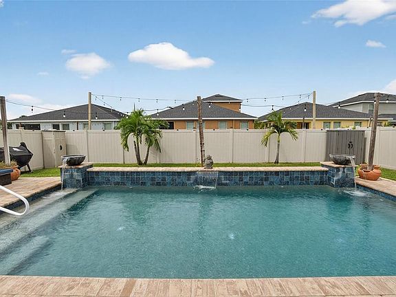 Welcome to your DREAM HOME! This stunning METICULOUSLY MAINTAINED four-bedroom, two-bath residence is nestled in a QUAINT, GATED COMMUNITY, offering the perfect blend or comfort and luxury! As you step inside, you'll be greeted by BEAUTIFUL BRAND NEW LVP FLOORING that flows seamlessly through out the main living areas and the bedrooms, creating a warm and inviting atmosphere. The SPACIOUS LIVING AREA is ideal for family gatherings or entertaining guests. The WELL-APPOINTED KITCHEN features MODERN APPLIANCES and ample counter space as well as a HUGE ISLAND making it a chef's delight! Step outside to your own PRIVATE OASIS, complete with a SPARKING POOL and a FREESTANDING SPA, perfect for relaxation on sunny days. The OUTDOOR KITCHEN and SCREENED-IN LANAI provide an excellent space for dining and entertaining in your FENCED IN BACKYARD! Surrounded by lush landscaping that enhances the SERENE AMBIANCE. Additional highlights include a two-car garage, ensuring convenience and storage, along with LOW HOA FEES AND NO CDD making this home an EXCELLENT VALUE in a VERY DESIRABLE LOCATION! Don't miss your opportunity to call this exceptional property your own!