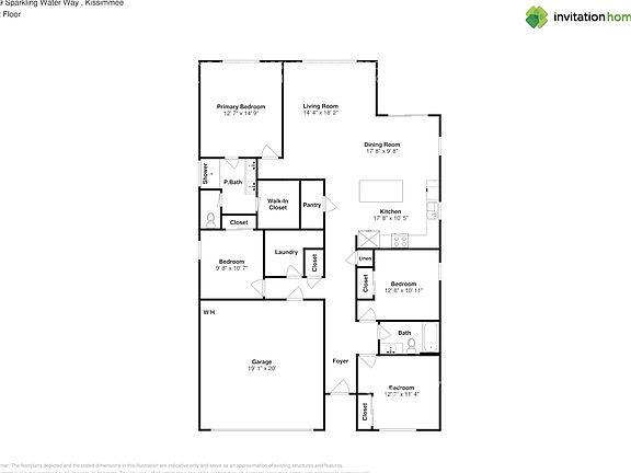 Home Features and Amenities: Air Conditioning, Garage, Kitchen Island, Long Lease Terms, Luxury Vinyl Plank, Open Floorplan, Patio, Pet Friendly, Primary Bedroom on Main, Recessed Lighting, Single Story House, Smart Home, Stainless Steel Appliances, Tile, Walk in Closet, W/D Hookups, and professionally managed by Invitation Homes.
