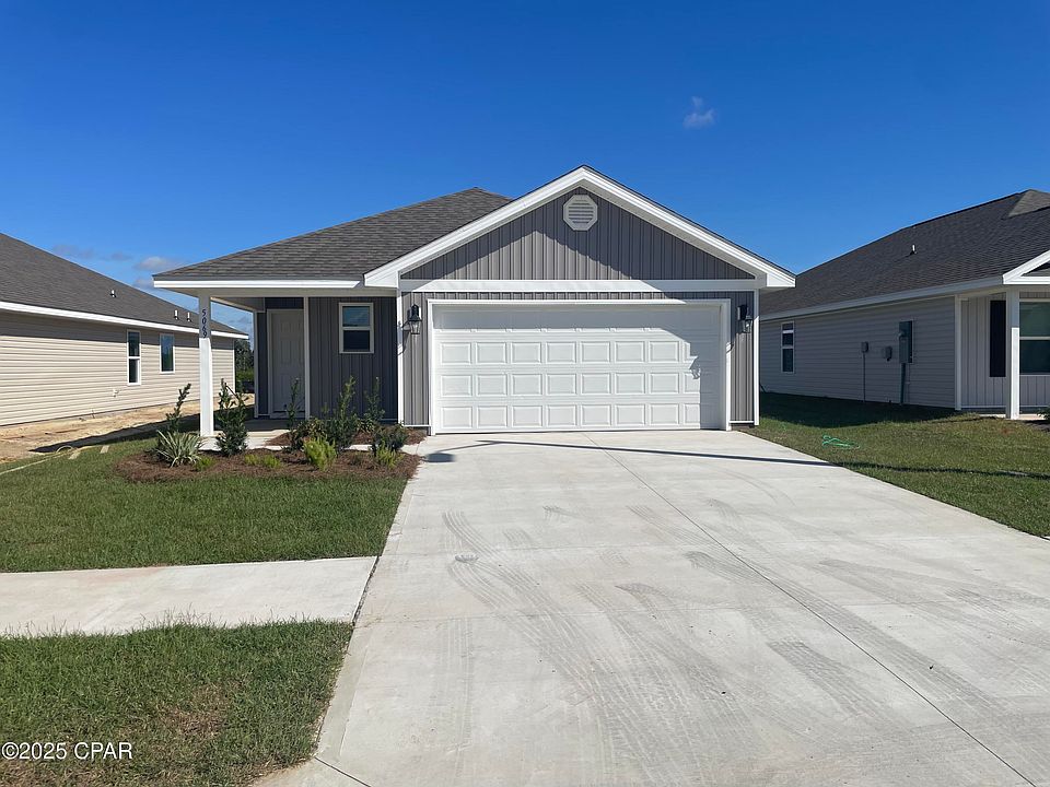 The Jemison is a 3-bedroom, 2-bathroom home that has 1637 square feet and has an open floor plan that makes you feel right at home. As you walk up to the home, you will notice the covered front porch next to the two-car garage. This space is perfect for a small patio furniture set to sit and enjoy your evenings while watching the sunsets in Panama City.