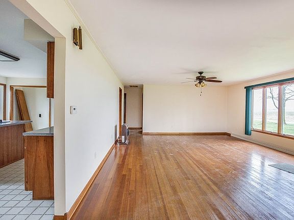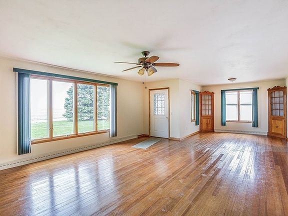 A truly remarkable property located just a few short miles from town. Upon entering the front door, you'll instantly notice the re-finished hardwood flooring in 2017 that runs throughout the living room, hallway and bedrooms, and the freshly painted interior. The living/dining area appears huge with the generous room sizes and the abundance of natural light beaming through the Anderson Windows, replaced approximately 15 years ago. The kitchen has been expanded and updated, has hickory cabinetry, corian countertops, a center island and a large pantry. Two dining area's, built-ins, appliances that will stay, and main floor laundry are added bonuses. The bath has been updated as well. Two large bedrooms with spacious closets. Off the kitchen, you'll find a breezeway adjoining a large finished room that may serve many purposes, is heated and cooled. A full basement offers the potential for additional living area, and has an area equipped for bathing your pet. The massive, newer detached garage, is capable of housing multiple vehicles and provides a great place for outdoor entertaining or storage. From the back side of the kitchen is a deck as well as a patio with a roll-out awning overlooking the partially fenced back yard, 2.59 acres of land, a 36x40 pole building, new in 2013 or 2014 and wired for welding, has electric and water run to it. A new line from the house to the septic system was installed approximately 2 years ago, and additional insulation was added to the attic. This extraordinary country property will go quickly!