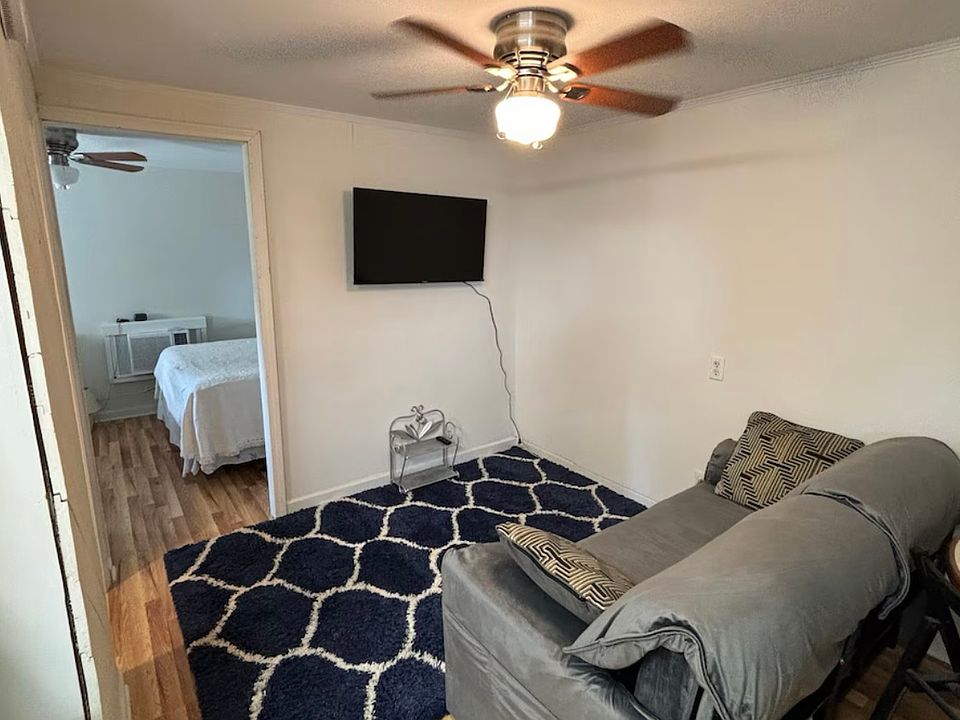 This fully furnished 1 bedroom, 1 bathroom downstairs unit is the perfect beach retreat, located on the corner of 17th Street and Hillside Drive in North Myrtle Beach just a quick walk to the ocean. The unit includes a full kitchen with a fridge/freezer, stove/oven, microwave, and coffee maker, as well as a cozy dining area and living room. The bedroom is comfortably furnished, and the living room also offers a pullout couch for extra sleeping space if needed. Guests enjoy convenient parking right at the unit's front door, making loading in and out a breeze. With shops, restaurants, and Molly Darcy's bar within walking distance and grocery stores, entertainment, and attractions just a short drive away, the location couldn't be better. The home sits on a corner lot with open grassy and sandy areas that are great for pets or enjoying the outdoors, and you can even catch glimpses of the sparkling ocean and sailboats when driving up to the house.