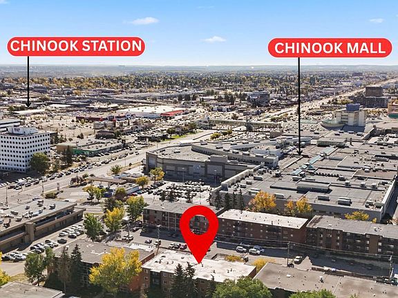 This well-kept third-floor corner unit offers 839 sq. ft. of thoughtfully designed living space, featuring two spacious bedrooms, a modern 4-piece bathroom, private balcony and an inviting, open layout that feels bright, airy, and comfortable. Upgraded finishes include granite countertops, tile backsplashes, and sleek white cabinetry in both the kitchen and bathroom. The bathroom is also complete with a tile-surround tub to complete the space. Flooring includes tile in the entryway, kitchen, and bathroom, with durable laminate flowing through the dining area, living room, and bedrooms. Additional conveniences include low condo fees that cover everything except electricity. You will find a versatile storage room at the entrance that can be used as a pantry, extra closet, or even converted into a laundry room, with plumbing nearby. This well-maintained building adds exceptional long-term value with major upgrades already completed. Vinyl windows and doors (2016–17), a new roof (2021), and a new boiler installed in August 2024 remove uncertainty about major future costs. The property is overseen by a proactive and well-managed condo board that prioritizes upkeep and financial sustainability for its owners. For your vehicle we have an assigned parking stall under a covered carport or if you don't feel like driving, the location is unbeatable. Just steps from Chinook Mall and the Chinook LRT Station, you'll enjoy fast access to downtown with a 13-minute train ride, running every 10 minutes. You're also minutes from a wide variety of shopping, restaurants, and services along MacLeod Trail, making this condo the perfect combination of comfort, convenience, and value. Whether you're a first-time buyer, investor, or looking to downsize, this move-in-ready condo offers the perfect balance of comfort, modern upgrades, prime location, and long-term value in a highly sought-after location.