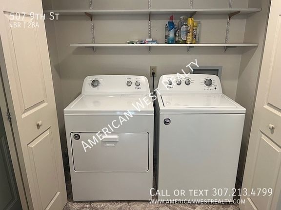 This is a 4bed/2bath home with 2,016 sq.ft. just minutes to downtown Cody. Fenced yard with large storage building in back. Main floor consists of kitchen, living, dining, three bedrooms, full bath, and laundry (included). The kitchen includes a refrigerator, range/oven, dishwasher, and microwave. Downstairs is another bedroom with full egress window, walk-in closet, and full bath next to it. Basement includes a bonus room or living room, hobby room, and lots of storage space. A $50 Lease Preparation Fee is due with your Holding Deposit.