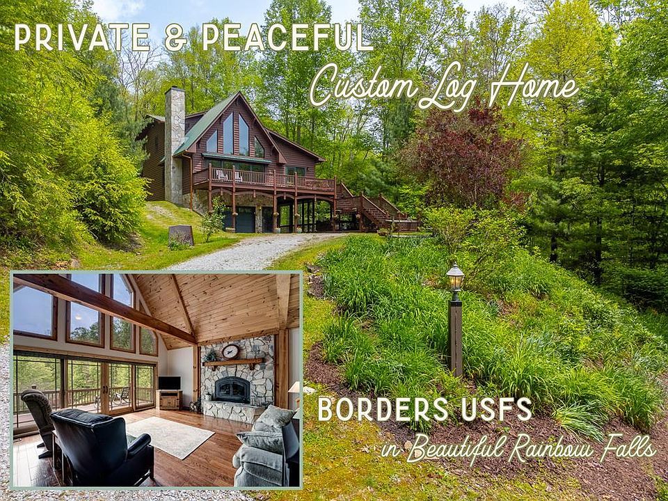 A Peaceful & Private Retreat! This custom 3BR 3.5BA cypress D log-sided home is the perfect place if escape from the everyday is what you seek! Tucked away at nearly 4000' elevation on 3.18 acres & bordered by USFS, the property features several springs, a mountain stream & a lovely pond in a beautiful gated community. This spacious home features an open kitchen/dining room combo w/cherry cabinets & Corian counters, living room w/vaulted & beamed ceilings, stone fireplace w/woodstove insert, huge wall of windows & a sunroom your plants will love + powder room. Take your pick for a primary suite. There is a large bedroom suite on the main floor, another bedroom suite w/full bath in the loft & a 3rd bedroom & full bath on the lower level w/a craft or hobby room. There are hardwood, carpet & ceramic tile floors & pleasing neutral colors. Full home radiant heat & gas furnace. Outside you'll find expansive decking, screened porch, lovely mature landscaping, standby generator, 1.5 car attached garage, 1 car attached carport & a 2 car detached garage. Situated 23 minutes from both Franklin & Hayesville, you have access to all the area has to offer & relaxation to come home to!