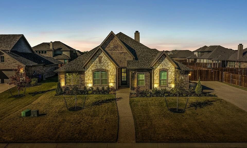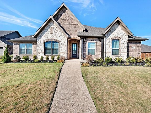 If you are looking for a new construction in the coveted Midway ISD (South Bosque Elementary) but don't want to wait - this could be the one for you! It was built in 2019 and this showcase open floor plan is well laid out and will win you over. Being in a cul-de-sac is a big plus and offers the perfect quiet location. The open concept and neutral colors make it bright and airy yet has that warm cozy appeal especially with the floor to ceiling stone fireplace in the family room and added built-ins on both sides. The kitchen has painted cabinets, upgraded granite, a huge island with farm sink and eat-at-bar. The dining/breakfast area accommodates a large table. The owner's retreat offers a spacious bathroom with separate garden tub, walk in shower, two vanities both with plenty of counter space and cabinets. Make sure you view the large owner's closet which also has access to the utility room. This feature is such a convenience when doing the laundry. There are many upgrades in this home including a video doorbell and nest thermostat that you do not want to miss!
