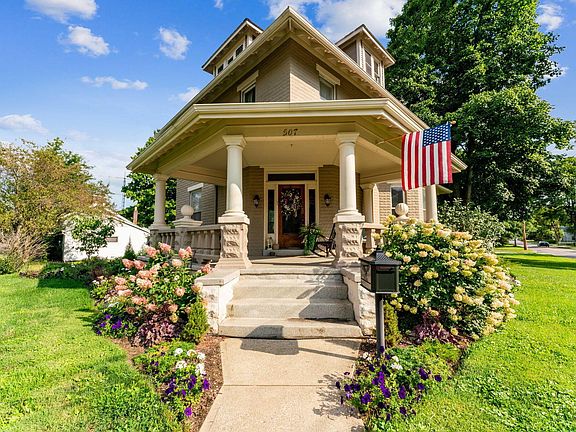 Rare opportunity to own this stunning Victorian home centrally located in downtown Groveport near to parks and restaurants. Home looks straight out of a Hallmark movie w/ its grand front porch and first floor featuring high ceilings, beautiful woodwork, and hardwood floors. Extra living and storage space in partially finished basement. Three bedrooms on 2nd floor and 4th bedroom on 3rd floor. Beautifully updated primary bathroom and large walk-in closet off the primary bedroom. Fenced backyard provides a private oasis and two car garage has a new concrete driveway (2022). Other updates include: HWH (2023), exterior and interior paint, and masonry work on porch.