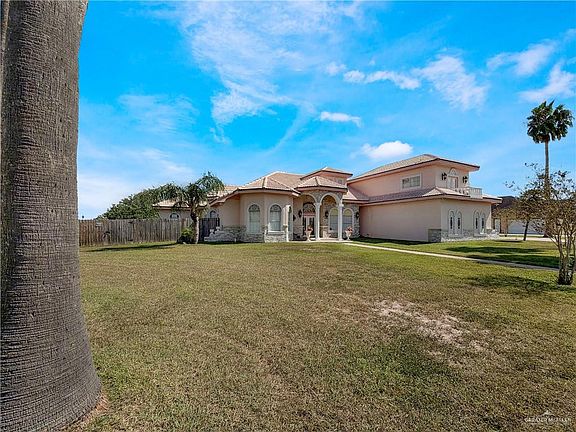 Experience space, comfort, and custom design in this stunning two-story home located on a corner lot in Donna! Featuring 5 bedrooms, 4.5 baths, and 4,881 sq. ft. of living area, this residence offers plenty of room for everyone. Step inside to find spacious rooms with 12–15 ft decorative ceilings, abundant natural lighting, and beautiful cantera windows that add timeless charm throughout. The kitchen boasts granite countertops with a full granite backsplash, custom cabinetry, and a layout designed for both daily living and entertaining. Upstairs, enjoy a dry bar and game room that opens to a private balcony, perfect for relaxing or hosting guests. Step outside to the huge covered patio, already equipped with plumbing and electrical connections for a future outdoor kitchen, overlooking the sprawling 0.80-acre lot—ideal for gatherings and family get-togethers. With its spacious layout, elegant details, and prime location close to major amenities, this home is truly a must-see!