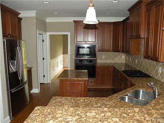 Beautiful house in a great neighborhood. Kitchen with granite counter tops, center island, bar, & spacious cabinets. Large 2-story family room w fireplace & lots of windows. Formal living room with French doors can be study. Master bedroom with large walk-in closet & another bedroom on 1st floor. Master bath with separate tub & shower. Huge loft. Walk-in storage. 4 FULL bathrooms. Screened porch & deck. Community pool & playground. Convenient to RTP, RDU, I-540, shopping and parks. Fridge, washer and dryer also provided. Videos to show house layout available.