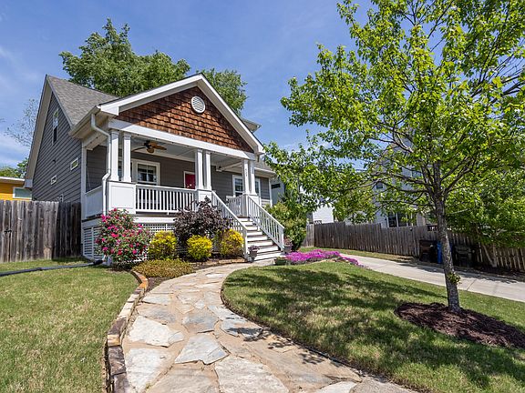 Urban living never looked so good in a bungalow. Tucked into the lively, walkable Cleveland-Holloway neighborhood, this 2016 gem was built by Durham Building Company and pairs modern updates with classic Craftsman touches. Think cozy porch swings, unique design details, and brunch spots just around the corner. Inside, you'll find granite countertops and a rich cocoa-colored tile backsplash in the kitchen, while a mudroom-style nook with cubbies and hooks keeps everything organized. The living room features gas logs and a clever pivoting TV mount that tucks away discreetly around the fireplace. The main level primary suite features a spacious closet, and its en-suite bath is accessed through a salvaged door repurposed from a former downtown office building. The fully fenced backyard offers plenty of space to relax, complete with a deck, patio, and even a baby blueberry bush. Out front, the porch swing will become your favorite spot, perfect for unwinding and saying hello to neighbors passing by. Living here means all your downtown favorites are just a walk away--no need to worry about finding parking! Enjoy brunch at Little Bull, grab a drink at The Velvet Hippo, catch a show at DPAC, or visit the Durham Bulls stadium--all just a stroll from your front door. With a welcoming neighborhood vibe and an unbeatable location, this home provides easy access to the heart of downtown Durham. The only thing missing? You, a good book, and that porch swing.