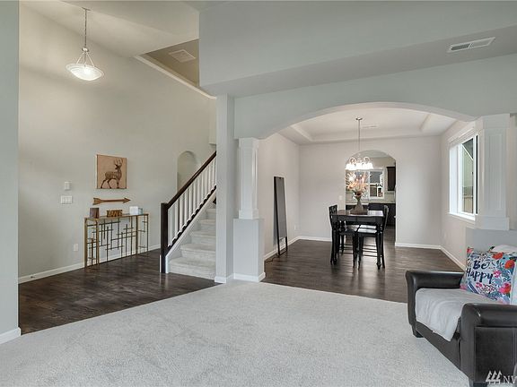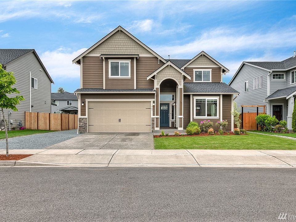 Gorgeous 2656 sq ft, 4 bd/2.5 bath home features an inviting, open floor plan w/ beautiful laminate floors, open rail staircase, white millwork, formal LR/DR w/ arched entry & coffered clg. Family room w/ gas fp adjacent to dream kitchen w/ granite, lg island w/seating, stainless appliances & pantry. Master suite boasts vaulted ceilings, walk-in closet, private 5-pc bath w/dbl vanity, soaking tub & shower! Bonus room + 3 addl bedrooms upstairs. AC, fully landscaped yard & covered back patio.