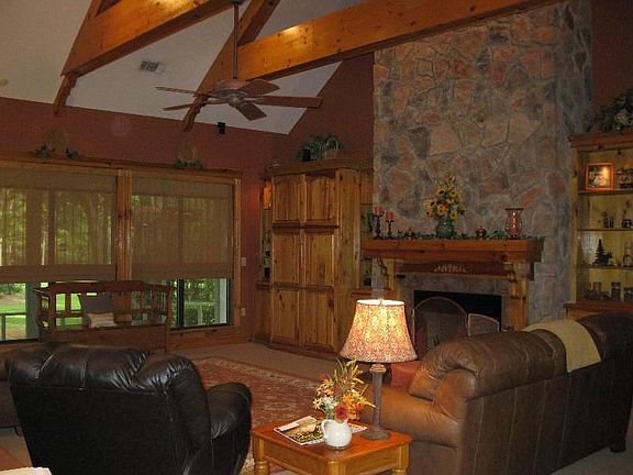 Absolutely beautiful home on 19 acres. Open floor plan, high ceilings with exposed beams, stone fireplace.Home office, large laundry room and screen porch deck and outbuilding. Near Little Black Creek Water Park