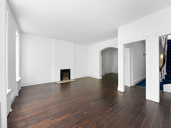 Entered via the elegant front stoop, the upper duplex offers a light-filled living room, dining area, and kitchen on the third floor, complemented by a half bath. The top floor includes four bedrooms and two full bathrooms, providing abundant space for family or guests.