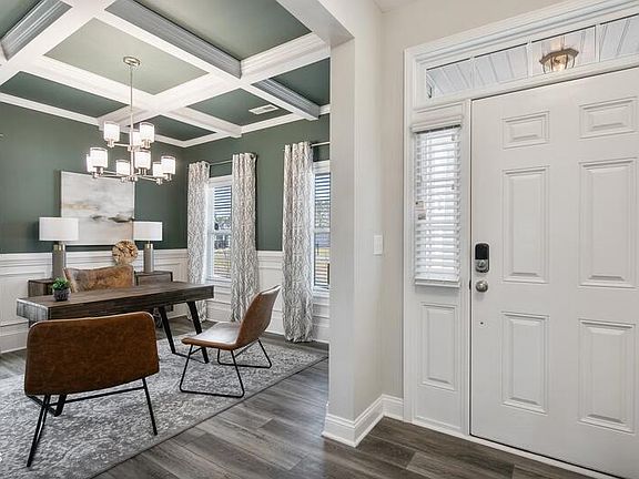 Introducing The Granville Plan in the highly desirable Maggie Way community! This beautiful two-story home welcomes you with a spacious foyer that opens into a stunning great room, complete with a gas log fireplace and floating mantle. Just off the great room is the formal dining room, enhanced with elegant picture-frame wainscoting. The luxury first-floor primary suite features a tray ceiling with crown molding, while the spa-like primary bathroom offers dual sinks with quartz countertops, a large walk-in tiled shower, and direct access to an oversized walk-in closet. Upstairs, you'll find three generously sized bedrooms, each with its own walk-in closet, along with a full hallway bathroom and an open loft area—perfect for a second living space or office. Enjoy your private, wooded 0.56-acre backyard and No City Taxes! This home is under construction, so there's still time to customize your design selections. Don't miss your opportunity—make it yours before it's too late! Builder is offering a $5,000 ''Use As You Choose'' incentive when using preferred lender Leslie Nunn - First Point Home Loans.