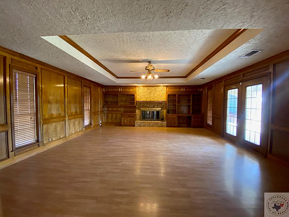 Wood-burning fireplaceFenced-in areaBrick homeFresh interior paintBack patioBeautiful built-insSpacious den