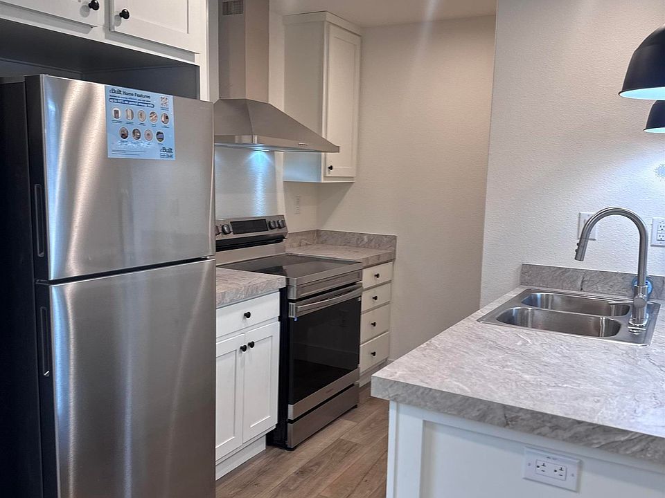 Brand New 1 Bedroom Home in Lodi; Be the First to Live Here! This newly built 1 bedroom, 1 bathroom detached home offers 527 sq ft of bright, open living in a quiet location close to Downtown Lodi, parks, and easy freeway access to 12 and 99. Enjoy private access off Locust 1/2 St and a covered carport for convenience. The spacious living room is perfect for a partial home office or for hosting gatherings. The modern kitchen includes stainless steel appliances, sleek counters, a pantry, and a cozy breakfast bar. Upgrades feature hardwood floors throughout, magic blinds, a walk-in closet, and an in-unit FULL SIZE washer and dryer. Built by trusted Clayton Homes, this is a rare chance to enjoy brand new construction in a prime Lodi location. Move-in ready for its very first resident!