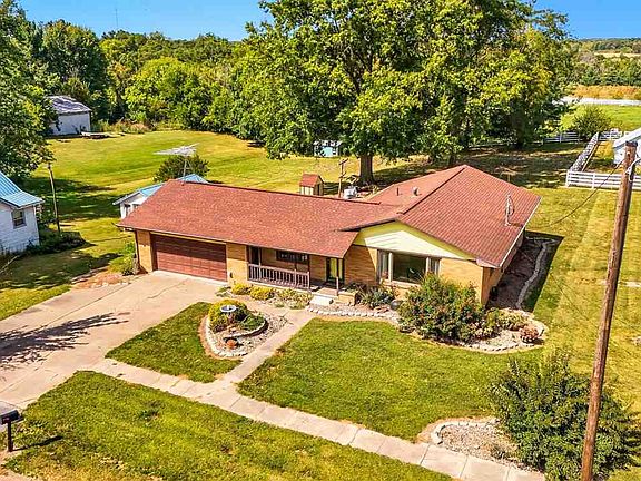 Charming 1965 brick ranch on a spacious .49-acre lot with a private backyard. This well-maintained 3-bedroom, 1.5 bath home welcomes you with a covered front porch and a large living room. The kitchen features abundant cabinet space, newer countertops, a breakfast bar, and a cozy dining area. Attached oversized 2-car garage with cabinets offers convenient entry near the kitchen. Off the kitchen is access to a large vinyl deck. All 3 bedrooms, full bath, half bathroom and laundry closet are on the main level. The finished basement is a retro lover's dream with a large family room, classic 1965 carpet and wallpaper, and a nostalgic bar with shutter-style upper cabinets—true vintage charm! Bonus kitchenette and ample storage room complete the basement. Don’t miss this unique blend of mid-century character and functional living space!