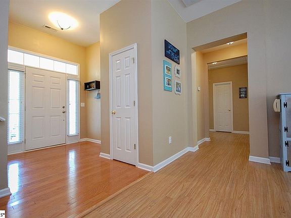 This home is on a quiet street, in a family friendly neighborhood. Soaring 10 foot ceilings throughout the home lend an impressive feeling to the open concept floorplan. An arched entryway into the formal dining room and an arched vista from the kitchen into the living space let you feel connected anywhere in the house. The bonus room can be used as a fourth bedroom, a mother-in-law suite, an office/library, or a playroom for kids. There is ample storage with two large walk-in closets off the bonus room. The backyard is large and entirely fenced in so it's perfect for pets or kids to play. The home allows for watching a brilliant sunset as you can see across the tree tops from your front porch views. Planter's Row community and HOA make it the most desirable neighborhood in Mauldin. The community has a pool, tennis courts, a very active HOA, and is currently building a brand new clubhouse! There are great school, and you can even walk to Greenbrier Elementary School.