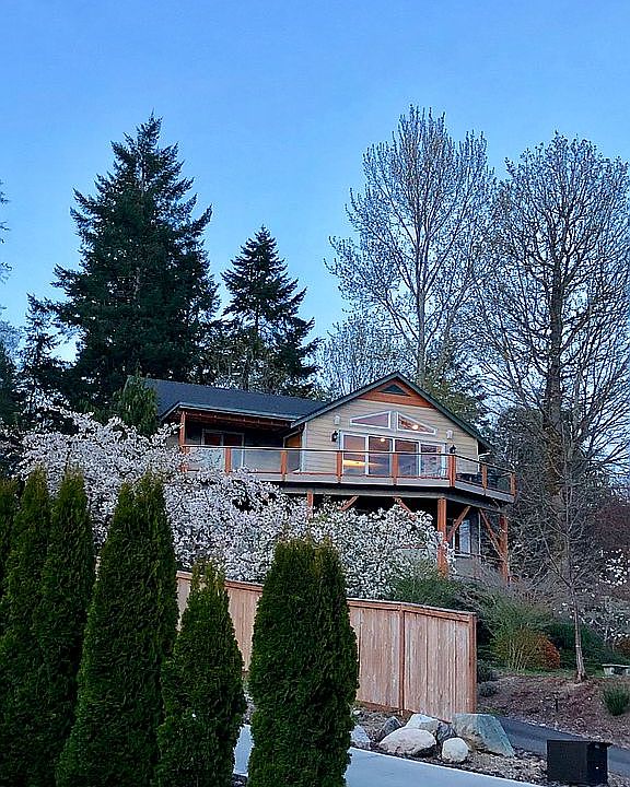 Modern craftsman, two expansive decks with view of the Sound, elaborate landscape over an acre, sport court, fencing, both propane and new heat pump and automatic whole house generator. (Clean dry full size under house storage)