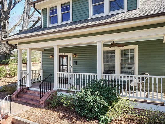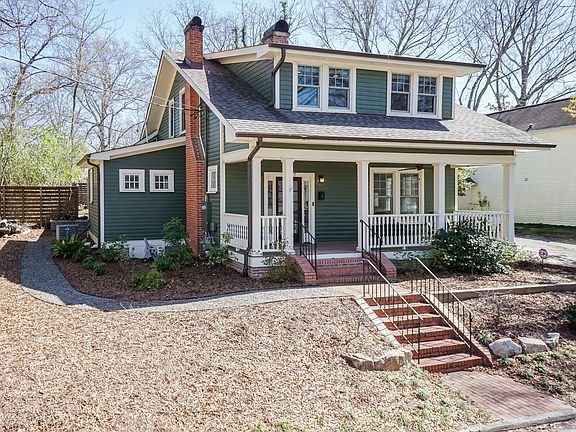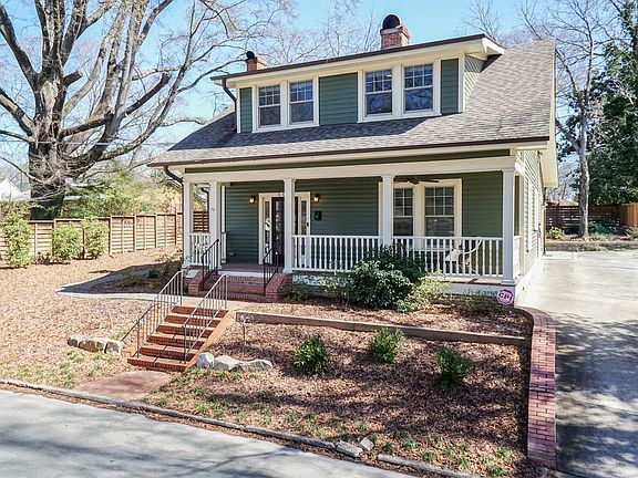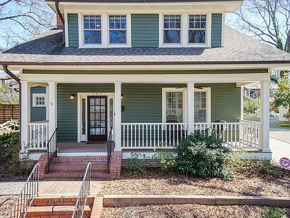 This stunning historical renovation will leave you wowed in the West End! Built in 1918, The Stephenson-Rochelle House has a storied past and has been featured on the 2017 Preservation Durham Spring Tour. From top to bottom, inside and out, this home is perfection! Craftsman Bungalow styled generous rocking chair front porch with ceiling fan leads to a large welcoming foyer and a century old staircase. Heart of Pine floors can be found throughout. The living room with a decorative FP mantle opens to a chef's dream kitchen with quartz counters, stainless appliances, gas range, stunning cabinetry, open shelves, and dining area. The primary en-suite is on the main level and features a new walk-in custom closet and updated bath with walk in shower. A dining area has been added with access to a private back patio. You will also find the powder room / laundry on the main level. Upstairs you will find two large secondary bedrooms and an updated full bath. The two-tiered outdoor back area features a patio with retractable screened in section, slate pavers, knee wall, and a decorative privacy fence. A private driveway affords parking for 2 cars and an electric plug-in. The landscaping plan was completed in Fall 2023 and includes an underground irrigation system. Pride of ownership is evident throughout and this unbeatable location in the heart of historic Durham make this a unique property. Showings start 4/12.