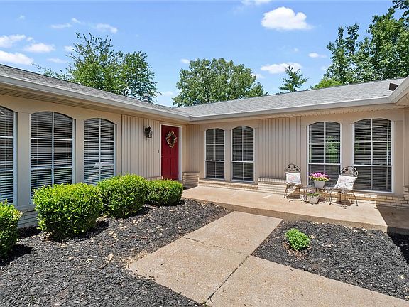 This beautiful 5 bedroom, 3 bath ranch boasts a spacious layout with a walkout lower-level and patio. The open kitchen/breakfast room is a gourmet cook's dream with custom cabinets and an additional island for food prep and wine bar & rack. The large partially covered deck off of the kitchen is the perfect space to entertain and enjoy the outdoors. The living room has a gas fireplace with a slate mantle with lighting, as well as wood flooring. Updated primary bath with chrome fixtures and new vanity. Finished lower-level features 2 bedrooms plus full bath and rec room. Walkout leads to a patio and large fenced in yard. Enjoy gardening in your own private oasis in the front courtyard. Subdivision has community Pool, Pond, and basketball/tennis courts.