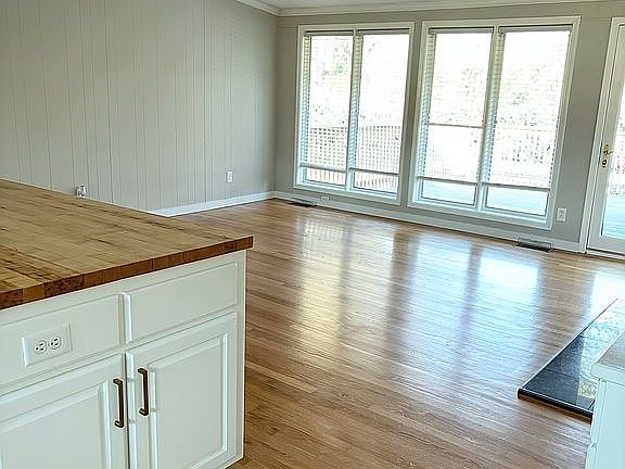 Open Kitchen/Great Room w/built in cabinets Butcher blk counter tops and Island