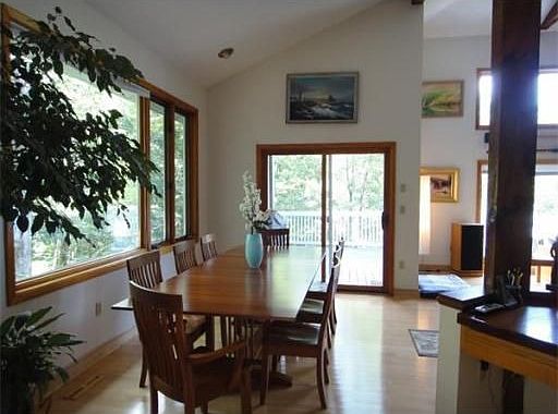 PUBLIC OPEN HOUSE SUN. 8/18 13pm. Are you a true Contemporary lover craving your oasis with unique architecture, panoramic views 6 acres to enjoy? Privacy..Many important updates.. Stone wall drive with lamp posts gracing...Enter be in awe of the wall to wall stone fireplace to the cathedral ceiling adorned by raised hearth to sit! Expansive glass throughout, easy entertaining with wonderful wrap around floor plan. Floor 2 Ceiling Windows in MBR w/sunken tub, Deck access small open area to downstairs but if u prefer can close off for even more privacy! Multiple Decks! Fin.WalkOut w/FP! Outside area to left can be cleared even more to create that immense yard you are looking for! Also available to rent 2800 p/mo. 1st/last/sec.dep preferred. Pet possibly negotiable at higher rent.