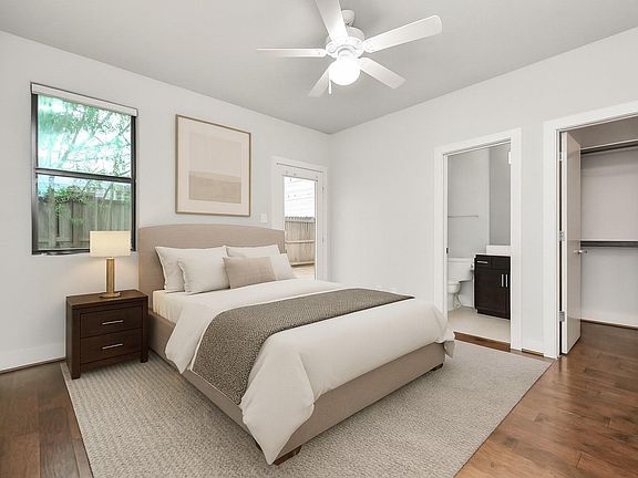 Come and check out this 3-bedroom, 3.5-bathroom home located east of Downtown, offering modern living within walking distance to the East River Project. This home features a spacious bedroom with an attached bathroom on the first floor, providing access to the sizable backyard. The second floor comprises a living room with abundant natural light, a dining space, and a modern kitchen equipped with stainless steel appliances and a walk-in pantry. On the third floor, retreat to the primary suite featuring dual sinks, dual closets, and, across the hall, a well-appointed secondary bedroom with its own attached bathroom. This home also offers ample parking with its own driveway and a two-car garage. Refrigerator, washer & dryer provided. Enjoy the vibrancy of East Downtown with dining, shopping, and entertainment options nearby.