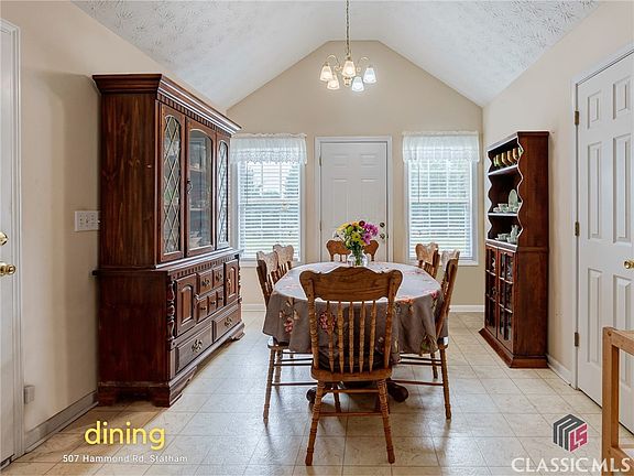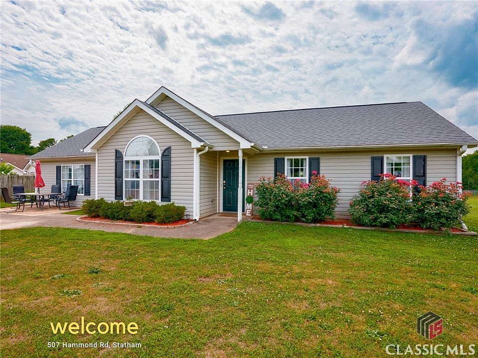 This lovely Statham home offers a unique opportunity for multi-generational families, small business owners, or those seeking rental income, including short-term rental potential. The main house features three bedrooms and two full bathrooms, while an attached apartment provides an additional one bedroom and one bathroom, perfect for extended family or rental purposes. This property is a great investment and is listed at $5,000 under its appraised value. Conveniently located in the charming town of Statham, this location between Atlanta and Athens can’t be beaten with its easy access to GA-316. In town, you’ll find several locally owned restaurants and businesses and the community is known for it’s small-town friendliness. This ranch home is nicely landscaped and exudes curb appeal. The great room impresses with a cathedral ceiling, a large window for natural light, and a ceiling fan, creating an open and airy atmosphere. The kitchen is well-appointed with ample wood cabinetry, additional counter space, and a vaulted ceiling that extends over the sunny breakfast nook. A formal dining room also provides additional dining space. The primary bedroom is large and includes an en suite primary bathroom with generous counter space and a walk-in closet. The attached apartment includes its own patio space and entrance, enhancing privacy and comfort, though interior access is available to the main living space, if desired. Outdoors, the property features a back patio and an incredible backyard spanning over half an acre, including a fenced-in area perfect for children or pets. A side yard with a garden shed provides additional storage. This property has been virtually staged to showcase its full potential and appeal.