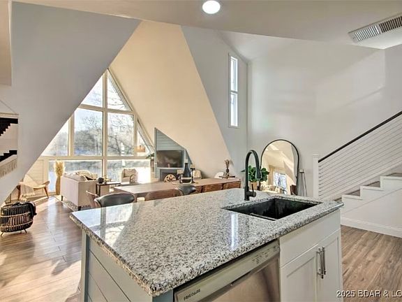 Welcome to the Waterfront Chalet of Lake Ozark. Sitting in a beautiful neighborhood near many attractions this home makes a great private residence or high performing short-term rental. This beautifully updated home offers the perfect blend of modern design, comfort, and breathtaking lake views. Nestled in a cove with main channel views, this home is ideal for someone wanting the best of both worlds. Featuring 3 spacious bedrooms and 2.5 bathrooms, this home boasts well over 2100 sq. ft. of stylish living space. It has an open floor plan and a well equipped kitchen with granite countertops, a dining space that easily seats 8, to a lovely living area all with an expansive and beautiful lake view.