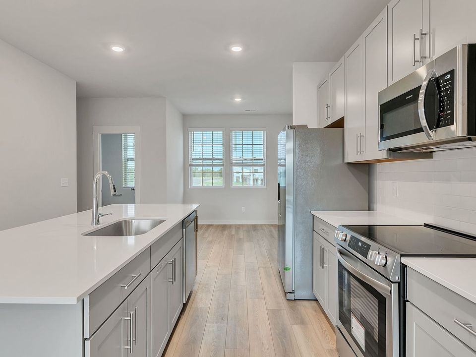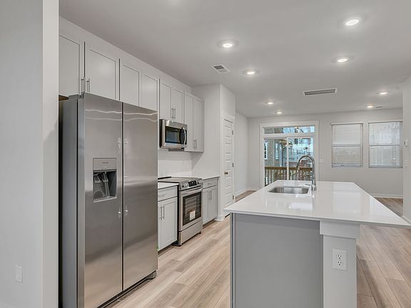 LOT #1031 - Gatlinburg. Upon entry into this new three-story townhome is a convenient two-car garage for storage space. On the second floor is the main living area, featuring an expansive Great Room with direct access to a modern kitchen and dining area. Residing on the top level are two bedroom suites situated at opposite ends of the home to grant privacy, both of which feature attached bathrooms for enhanced livability.