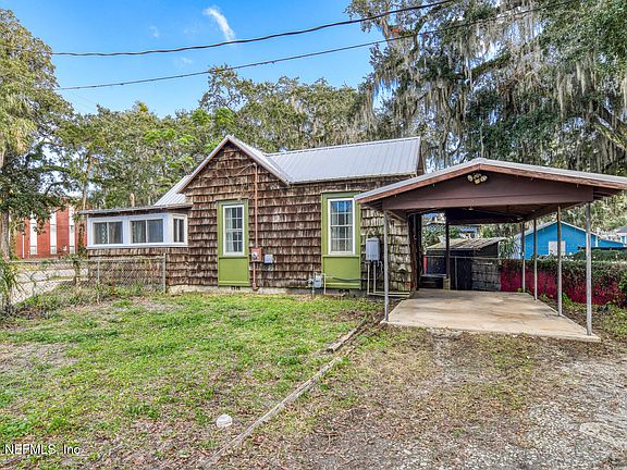 Step into the character and charm of this 1925' delightful bungalow located in the heart of Palatka's Historic District. With its quaint wood shake exterior and cozy interior, this home offers a perfect blend of historic charm and modern comfort—ideal for those looking for a unique property with character and style. Not only a great investment property, but also a good first-time home buyer's property. This would also be an excellent downsize for those looking for low maintenance. This location allows the owner to simply walk to the Riverfront for a nice stroll on the shores of the St Johns River, dining at local restaurants, fishing, boating or a little down town shopping! Enjoy easy access to all things Palatka has scheduled in the downtown area, to include festivals, fishing tournaments, parades and much more. This well-maintained home has a metal room, instant hot water heater, updated windows, fenced yard + one car carport. Come take a look and make this adorable hm yours.