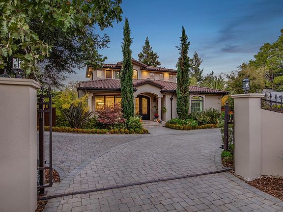 Breathtaking luxury! Offering unparalleled craftsmanship, a thoughtfully designed floorplan & classical elegance in every detail. Expansive living spaces & formal dining room have crown moulding, surround sound speakers & luxury wide-plank flooring throughout. Epicurean kitchen features high-end stainless steel appliances, walk-in pantry, oversized granite slab island. Ground floor bedroom suite, ideal for use as private home office. Upstairs primary bedroom retreat has walk-in closet & spa-like ensuite bath with quartz counters, soaking tub & frameless glass shower. Backyard oasis for outdoor entertaining w/ multiple seating areas, BBQ, fire pit, manicured landscaping & mature, organic fruit trees. 2bd/2ba guest cottage hosts a full kitchen & private yard, perfect for multi-generational living. Gated property, fully wired for security. Stellar location & award winning Los Altos Schools! Easy commute to Google, Apple, etc. Blocks from Los Altos Country Club & near hiking/biking trails