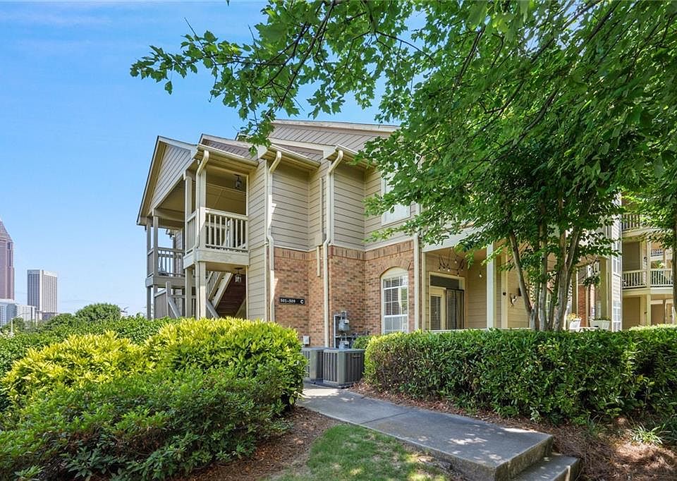 Welcome home to this residential oasis right in the middle of the heart of Atlanta. This Old Fourth Ward condo feels private from the rest of the city yet still offers close proximity to some of Atlanta's greatest attractions. This 2 bedroom condo boasts upgrades like quartz countertops, upgraded stainless steel appliances, shaker cabinets, and tasteful shiplap accents throughout. Enjoy meals in the designated dining area or add a few barstools to the peninsula countertop to offer a different setting. The secondary bedroom is adorned with glass French doors which allow for additional natural light to flood the space. This unit comes equipped with its own in unit laundry room with a perfect folding station just above the washer and dryer. There's plenty of room for all of your clothes and shoes in the primary bedroom closet and both bedrooms are of ample size. Sip your morning coffee or tea on the porch and enjoy a glimpse of the Downtown skyline every morning. Don't overlook the storage closet as well, found just outside the door to the condo. This one packs a punch and is ready for its next owner to call it home. McGill Park condo complex also offers additional amenities and features such as gated access, pool, clubhouse, gym, and business center. This complex also sits 13 minutes from Piedmont Park, 7 minutes from Ponce City Market, 6 minutes from Krog Street Market, and 10 minutes from Grant Park.
