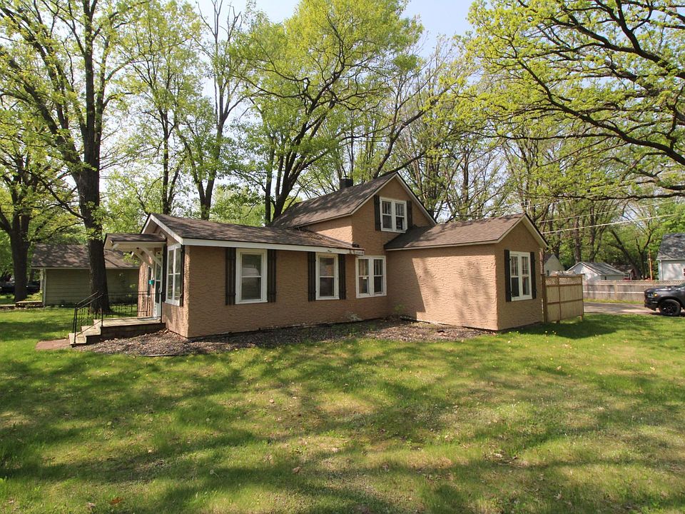 Large corner lot with mature trees, very nice patio area with privacy fence. Detached garage and storage shed.