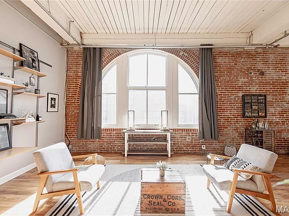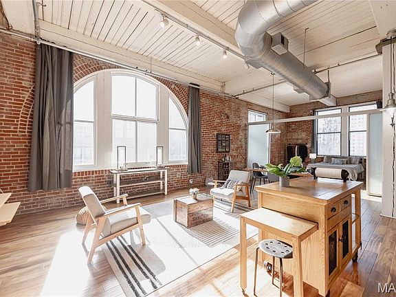Downtown Loft Living at Its Finest. Corner Unit with Stunning Natural Light! Welcome home to this stylish loft in the historic Knickerbocker Building. This gorgeous unit boasts exposed brick walls, soaring 12’ timber ceilings, and oversized Palladian windows. The open kitchen features granite countertops, stainless appliances, kitchen cart and sleek glass tile backsplash all complemented by wood flooring throughout. A custom sliding door provides privacy for the bedroom. A new HWH (2022) ample closet space, updated bathroom and private in-unit washer & dryer all add to the convenience of city living. This unit has a storage locker on the same floor and 2nd shared laundry on the 2nd floor. Easy entry off of St Charles Street with fantastic access to parks, dog parks, and The Central Library. Walk to St. Louis’ chic restaurants, nightlife, major sports venues and entertainment. Don’t miss your chance to own this outstanding urban retreat! Location: End Unit
