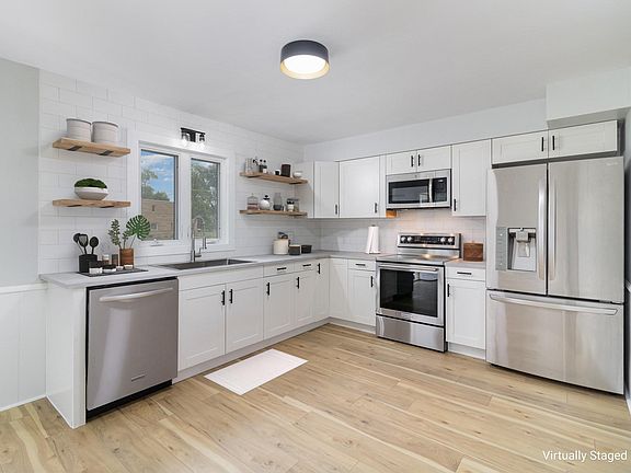 Here is the fully updated 4 bedroom, 2 bathroom home you’ve been looking for! Extra-wide backyard meets up to a school and city park—plenty of space to play. Don’t miss the beautiful 3-season porch, fully remodeled with extra-large windows and LVP flooring to take in the spacious views and enjoy this great location. Too many updates to list: fresh interior and durable exterior paint, all new white solid-core 3-panel doors, laminate wood flooring throughout the main floor and new carpet upstairs. The kitchen features all new soft-close cabinets and drawers, spice rack, new counters, large sink, stainless appliances, tile backsplash, and floating wood shelves. Main floor bath is updated with new tub surround and fixtures, large vanity, and flooring. Major expensive updates already covered - new concrete driveway flowing into the back patio, a brand new HVAC system forced air furnace and central AC, and many new windows and doors. So many great surprises not even listed you will not want to miss seeing this one!