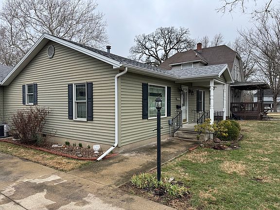 Looks are very deceiving with this adorable, well-kept property. This home features a big living room, cute eat-in kitchen with updated cabinets and counter. There are 2 bedrooms, 2 full baths, large family room, and a great oversized attached garage. The garage has 2 overhead doors with automatic openers, electrical panel and a pulldown staircase overhead. The nice big back yard is fenced with an extra-large storage shed, sided to match the house. The deck has a very attractive metal gazebo cover with side screens, which is wonderful to keep the insects away while enjoying the lovely yard. The new addition to the house was done in 2010 by as well as the roof, siding, fascia, guttering and landscaped. Call to see this charming dollhouse today because it will not last long! New water heater in June 2022. Furnace maintained every spring and fall. Ameren IP budget billing available on request Executor believes there is hardwood flooring under the carpet in the bedrooms and living room.