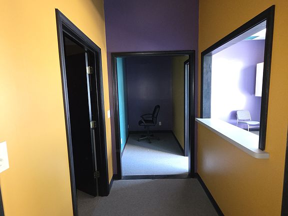 Former dentist office in a very visible and high traffic area one block from downtown. Small entrance, reception office with glass window, large partitioned central multipurpose room with sinks, a storage room, and a bathroom.